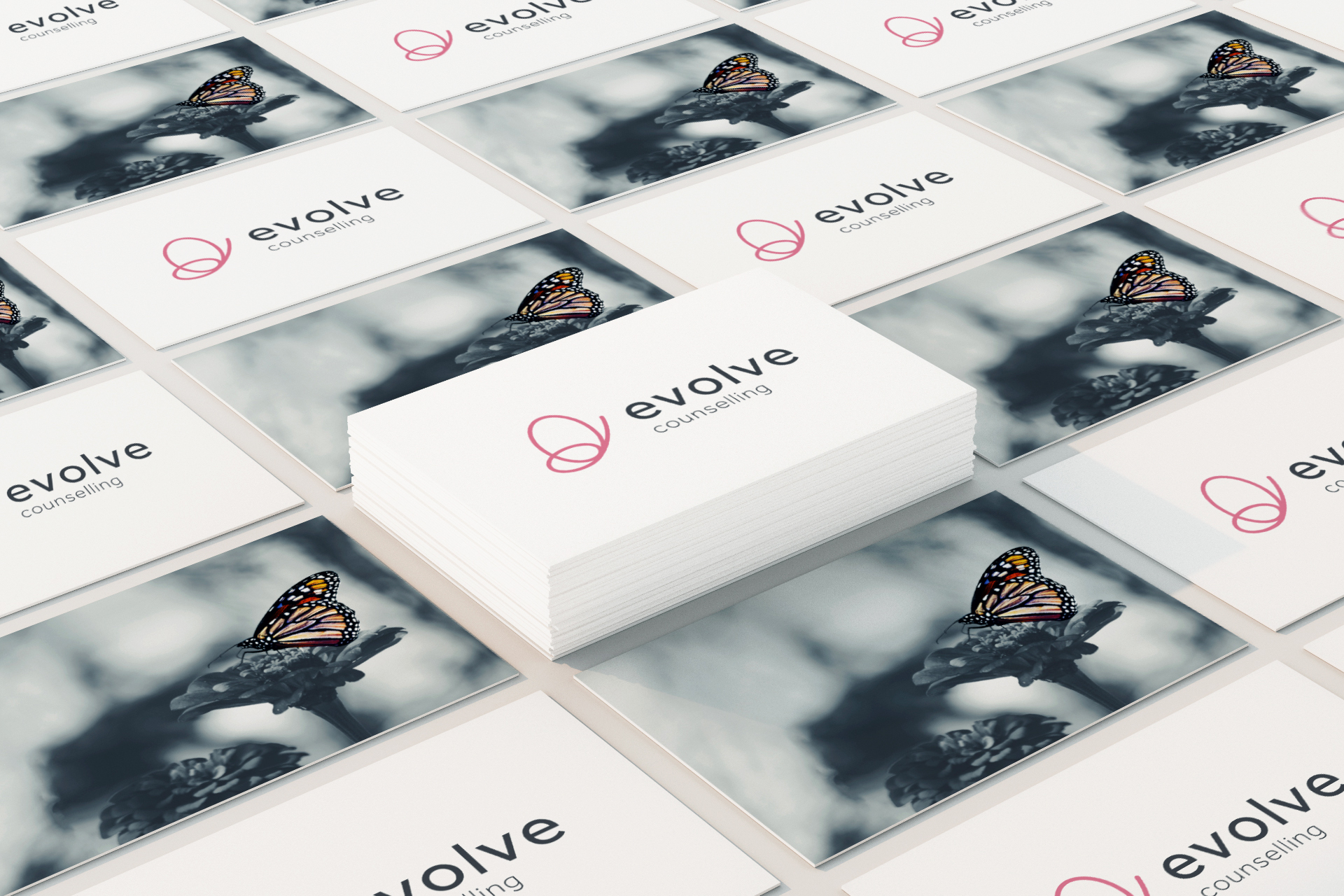 The brief from evolve was simple; create a brand that reflects the evolution and change of a person throughout their life. Using a single line to draw the logo mark, I created a simple linear motif which is instantly recognisable as a butterfly.
